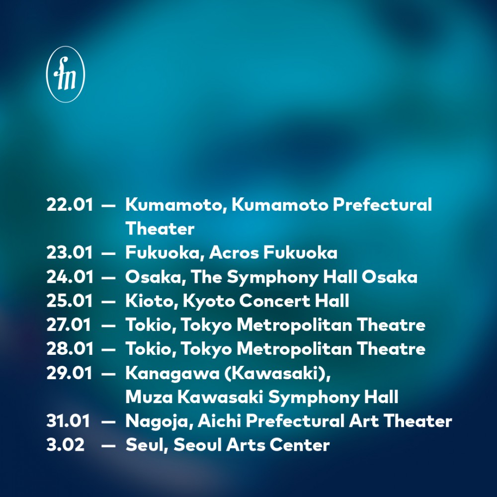 Orkiestra Filharmonii Narodowej rozpoczęła swe 159. koncertowe tournée, które potrwa do 3 lutego i obejmie najważniejsze sale koncertowe Japonii i Korei Południowej. Filharmonikom w trasie towarzyszyć będą także laureaci XIX Międzynarodowego Konkursu Pianistycznego im. Fryderyka Chopina.